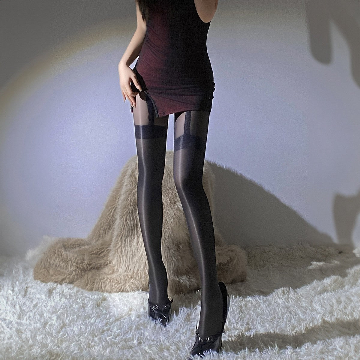 LS Sexy Stockings Hand-Torn Stockings Sexy Pure Desire Temptation Curry Silk Suspender Stockings Popular Model 1191